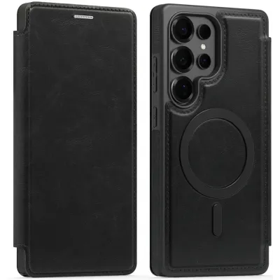 Phonesta Luxury Leder Book Wallet Klapphülle mit MagSafe für Samsung Galaxy S25 Ultra - Schwarz