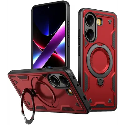 • Phonesta MagLock Armor Back Cover Hülle Ring und MagSafe für Xiaomi Poco X7 Pro - Rot