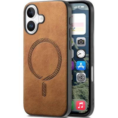 • Phonesta Retro Vegan Leder MagSafe Back Cover Hülle für Apple iPhone 16 Plus - Braun