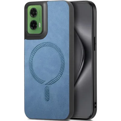 Phonesta Retro Vegan Leder MagSafe Back Cover Hülle für Motorola Moto G35 - Blau