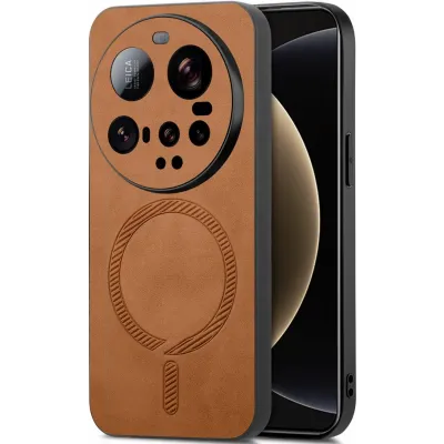Phonesta Retro Vegan Leder MagSafe Back Cover Hülle für Xiaomi 15 Ultra - Braun