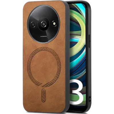 HandyhüllenXiaomi HüllenXiaomi Redmi A3 HüllenPhonesta Retro Vegan Leder MagSafe Back Cover Hülle für Xiaomi Redmi A3 - Braun