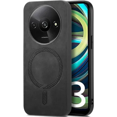 HandyhüllenXiaomi HüllenXiaomi Redmi A3 HüllenPhonesta Retro Vegan Leder MagSafe Back Cover Hülle für Xiaomi Redmi A3 - Schwarz