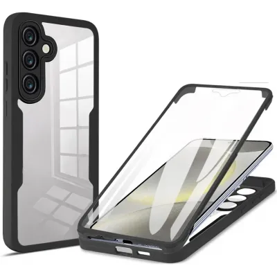 Die Phonesta Slim Protect 360 Vollschutzhülle für das Samsung Galaxy A55 bietet ausgezeichneten Schutz für Ihr Smartphone. Hergestellt aus hochwertigem Thermoplastic Polyurethane (TPU) und Acryl, ist diese Hülle langlebig und zuverlässig. Sie bietet vollständigen 360-Grad-Schutz gegen Stürze, Stöße und Kratzer, sodass Sie sich keine Sorgen über tägliche Abnutzung machen müssen. Die Farbe Schwarz verleiht der Hülle ein stilvolles Aussehen, während die transparente Acryl-Rückseite das ursprüngliche Design Ihres Telefons zeigt. So sieht Ihr Telefon immer gut aus, auch mit einer Hülle.