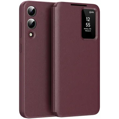 • Phonesta Smart Window Book Wallet Klapphülle für Samsung Galaxy S25 Edge - Bordeaux