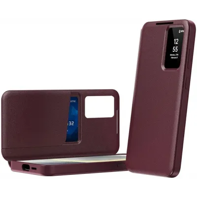 • Phonesta Smart Window Book Wallet Klapphülle für Samsung Galaxy S26 Ultra - Bordeaux