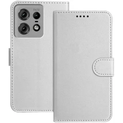 • Phonesta Smooth Skin Book Wallet Klapphülle für Motorola Edge 50 Pro - Silber