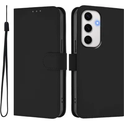Phonesta Leder Vertical Flip Book Wallet Klapphülle für Samsung Galaxy S24 FE - Schwarz
