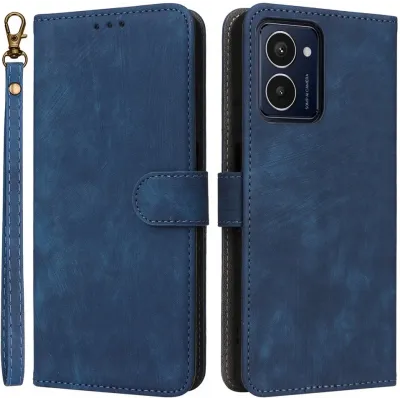 Phonesta Vintage Skin Book Wallet Klapphülle für HMD Pulse/Pulse Plus/Pulse Pro - Blau