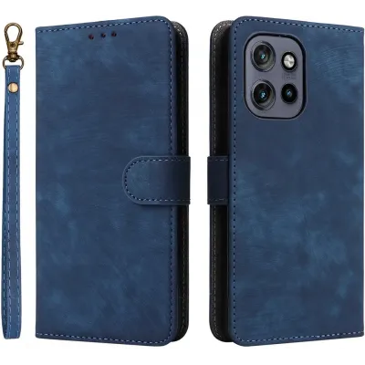 • Phonesta Vintage Skin Book Wallet Klapphülle für Motorola Edge 60 Neo/Edge 50 Neo / ThinkPhone 25 - Blau