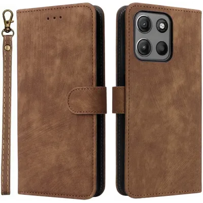 • Phonesta Vintage Skin Book Wallet Klapphülle für Motorola Moto G17/G17 Power/G15/G15 Power - Braun