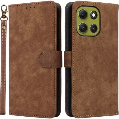 Phonesta Vintage Skin Book Wallet Klapphülle für Motorola Moto G86 Power - Braun