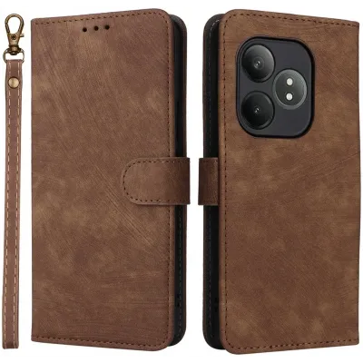 Phonesta Vintage Skin Book Wallet Klapphülle für Realme GT 6 - Braun