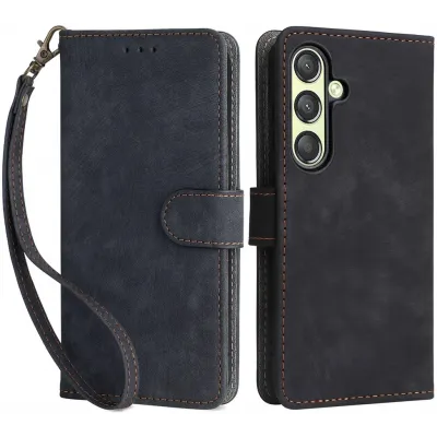 • Phonesta Vintage Skin Book Wallet Klapphülle für Samsung Galaxy S24 - Schwarz