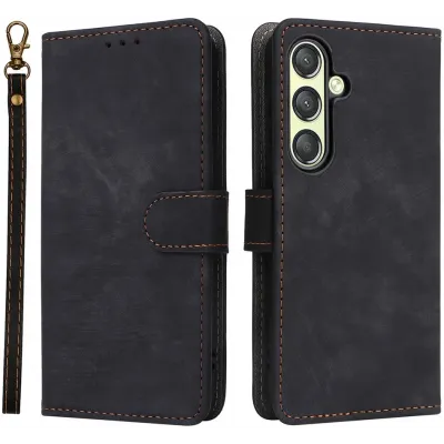 Phonesta Soft Skin Book Wallet Klapphülle für Samsung Galaxy S25/S24 - Schwarz