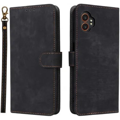 • Phonesta Vintage Skin Book Wallet Klapphülle für Samsung Galaxy Xcover 7 Pro - Schwarz