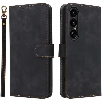 Phonesta Vintage Skin Book Wallet Klapphülle für Sony Xperia 1 VII - Schwarz