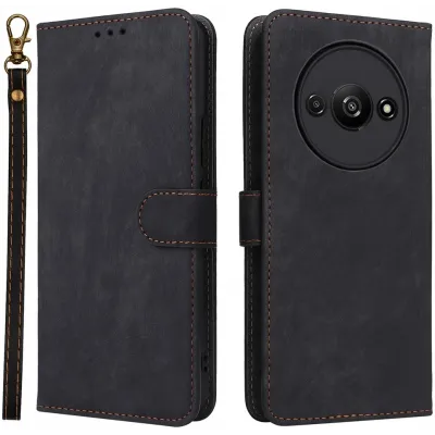 Phonesta Vintage Skin Book Wallet Klapphülle für Xiaomi Redmi A3 - Schwarz
